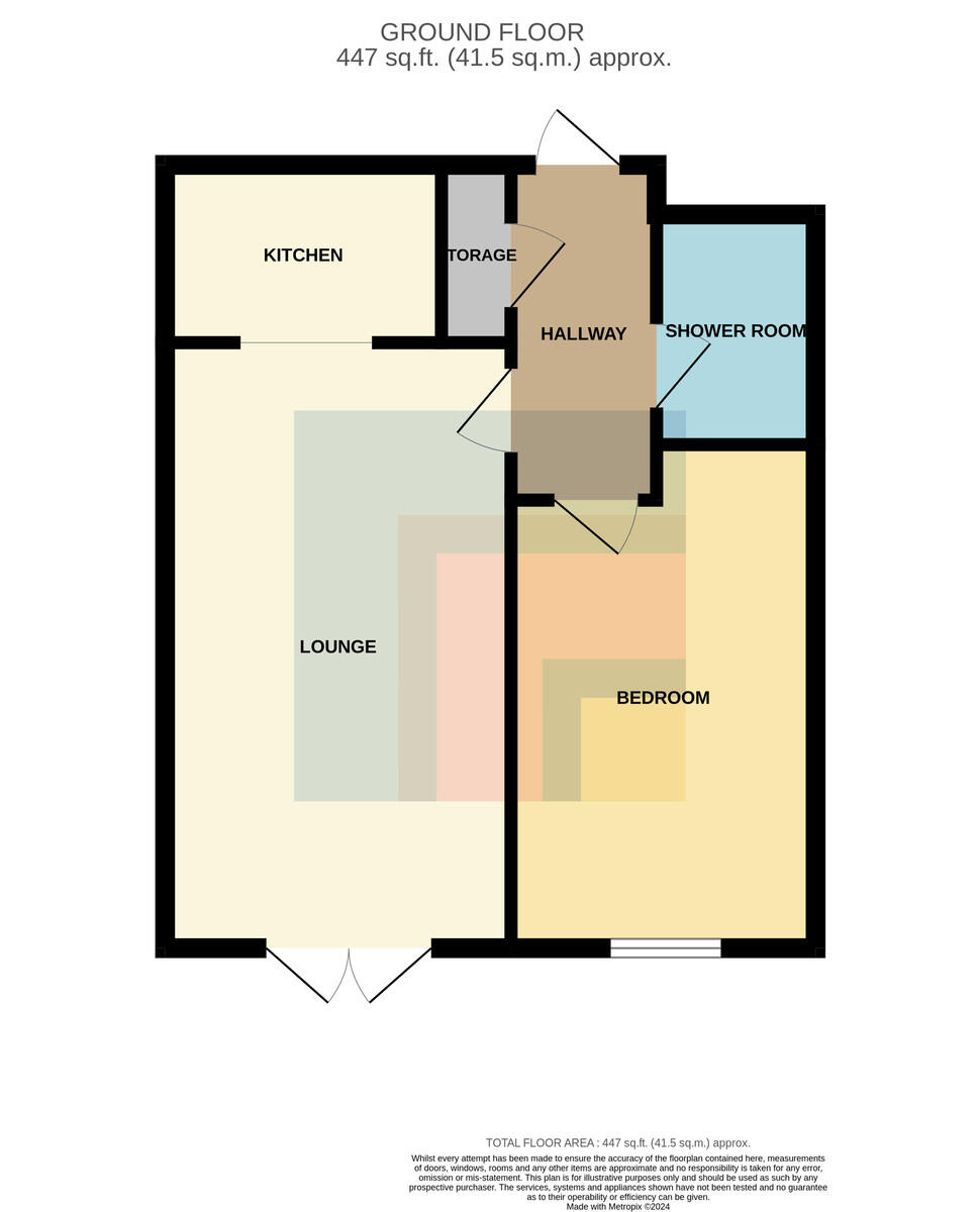BATHROOM6' 8" x 4' 9" (2.04m x 1.47m) Vanity enclosed wash hand basin, low level WC and disability assisted bath with electric shower over. Electric towel rail. Tiled walls and flooring. Extractor fan.