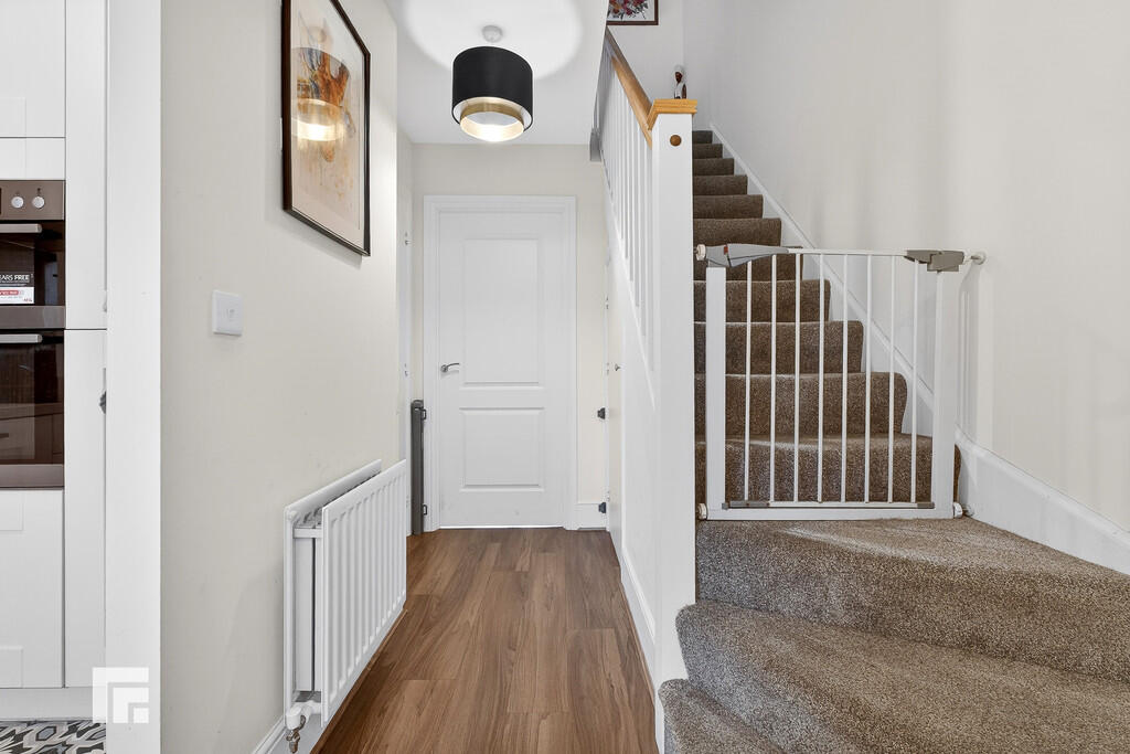 ENTRANCEHALLWAY Approached via a composite entrance door leading to the entrance hallway. Staircase to first floor. Under stairs storage cupboard with plumbing for washing machine and extractor fan. Quality laminate flooring. Radiator. Storage cupboard.