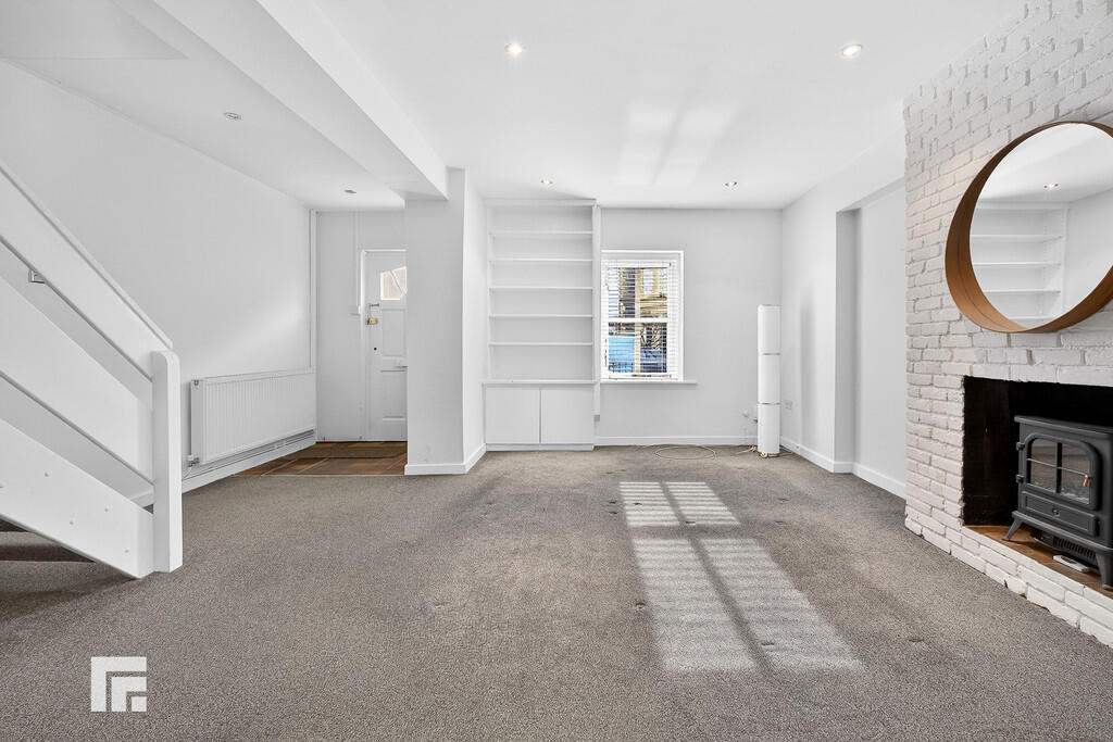 LOUNGE17' 1" x 16' 2" (5.22m x 4.93m) Double glazed window to front aspect. Exposed brick chimney breast with space for fireplace. Carpeted flooring. Stairs leading to first floor landing. Spotlights. Radiator.
