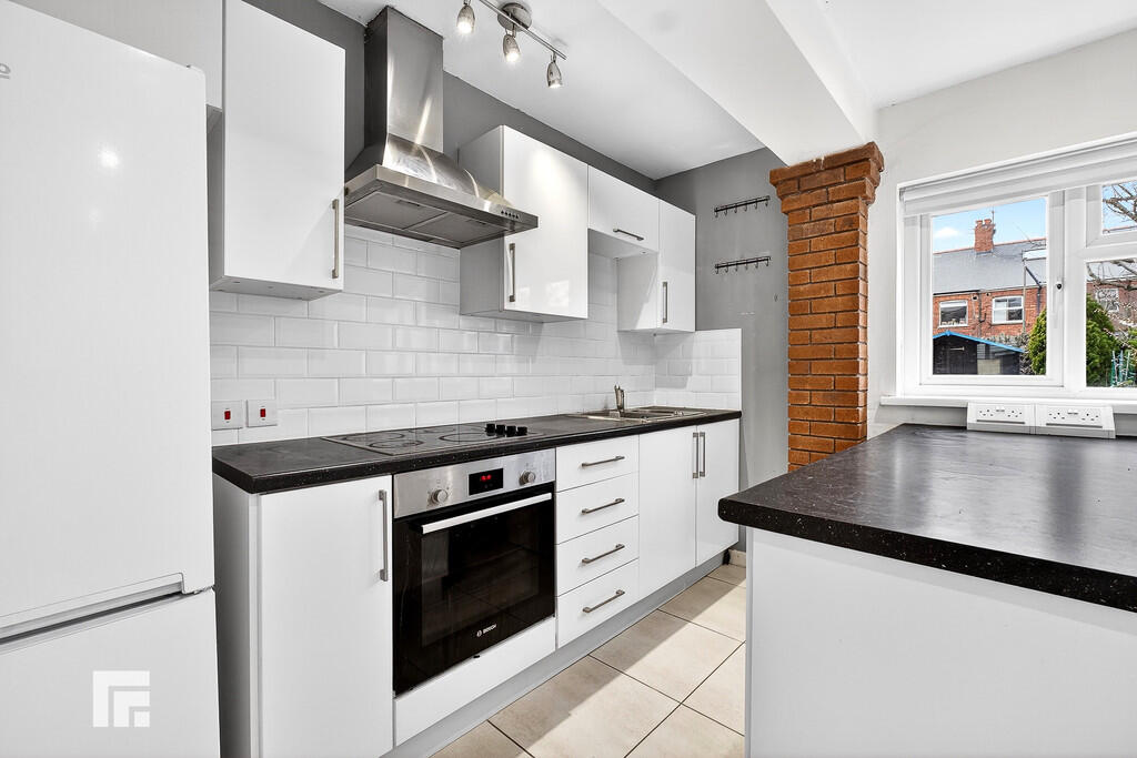 KITCHEN/DINER15' 8" x 9' 9" (4.79m x 2.98m) Large double glazed uPVC window to rear aspect to provide maximum natural light to the room. Tiled flooring. Fitted kitchen with complimentary work surfaces over incorporating double ceramic sink with mixer tap, and four ring electric hob with extractor hood above. Integrated oven plus space and plumbing for washing machine and fridge freezer. Tiled splash backs throughout. Spotlights and pendant light fitting. uPVC door leading to rear garden.