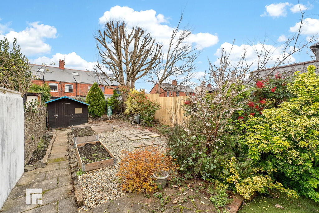Rear - Private rear garden. Laid to patio, with part shingled and artificial grass areas. Flower beds. Fence and stone wall borders. Rear door leading to gated lane access.