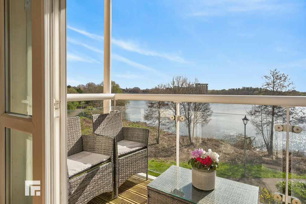 BALCONY Large decked balcony with stunning water views and glass surround. External lighting. Accessed from the living room.