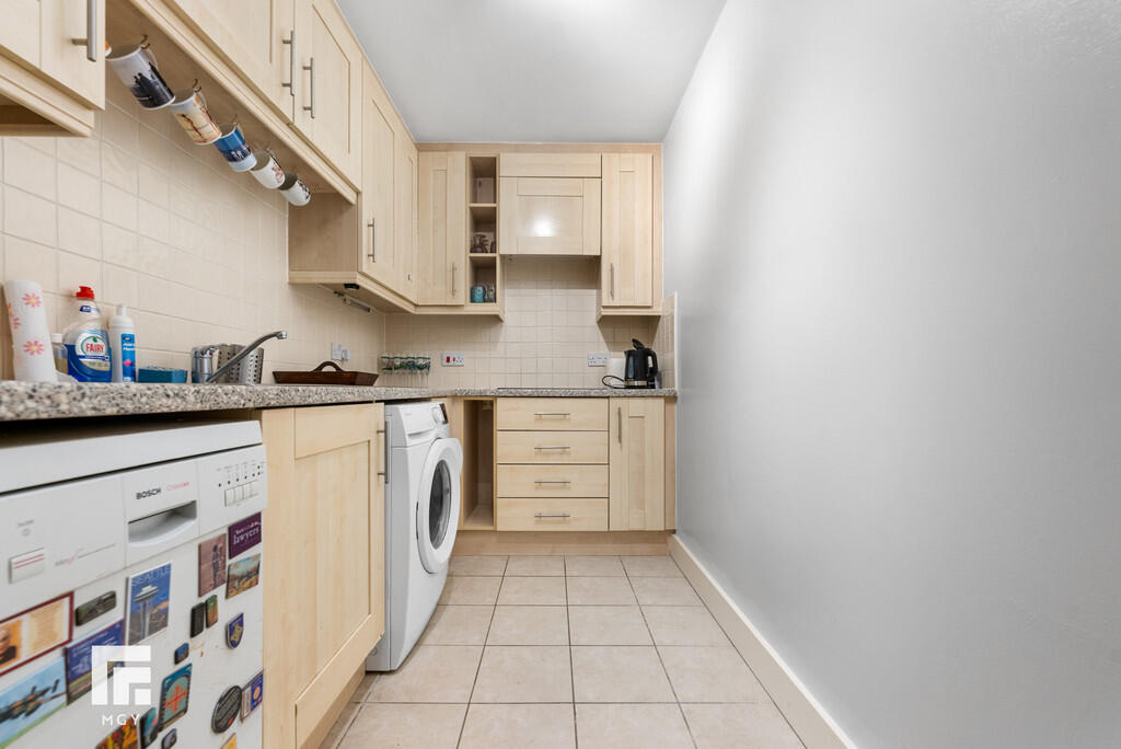 KITCHEN14' 6" x 5' 10" (4.42m x 1.78m) Separate kitchen. Fitted wall and base units with ample storage. Work surfaces incorporating double stainless steel sink. Under unit lighting. Integrated four ring Smeg hob, Neff oven and extractor hood over. Integrated microwave and fridge freezer. Free standing dishwasher and washing machine. Tiled flooring and part tiled walls.