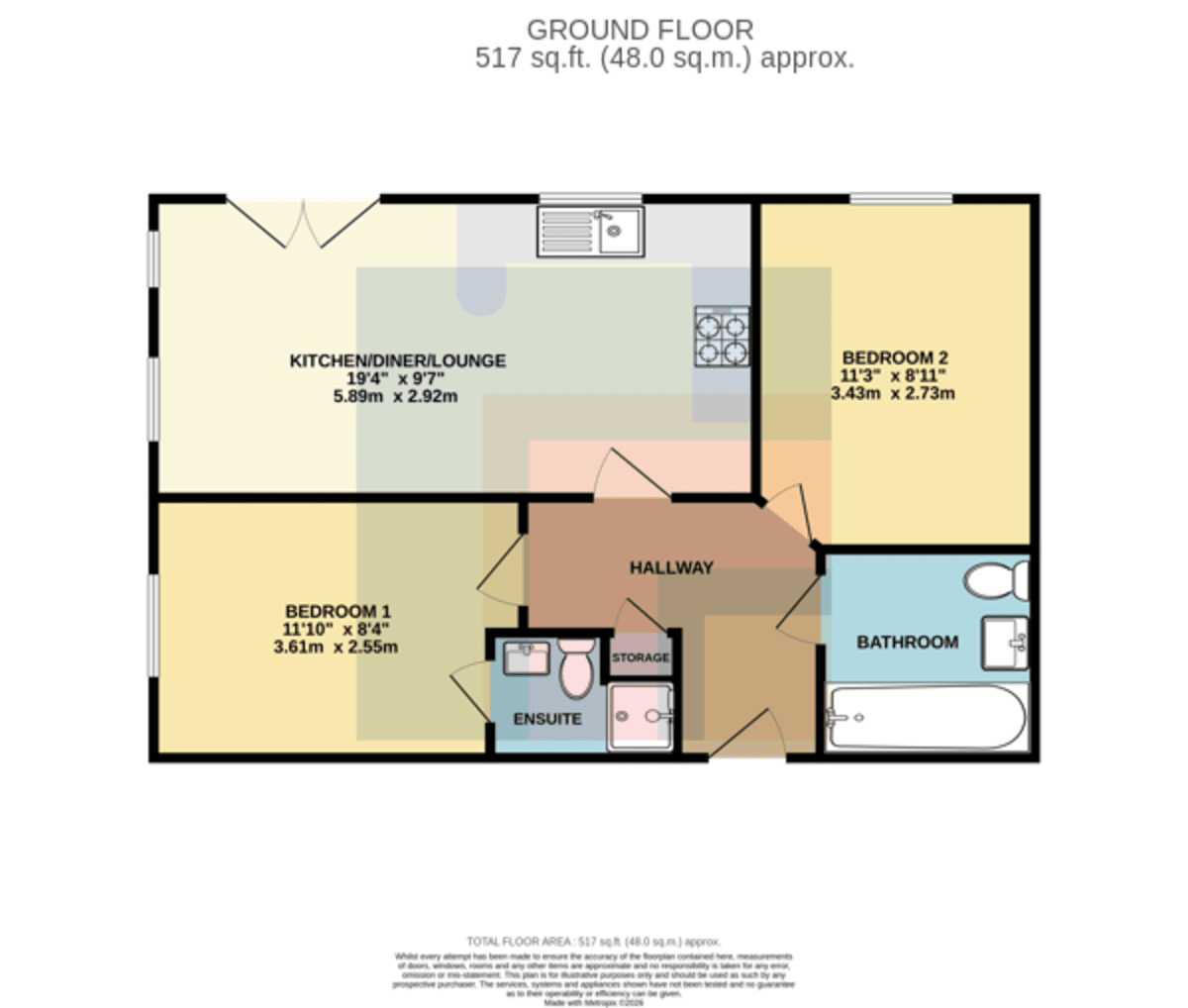 Step inside to discover elegant porcelain tiled floors, complemented by venetian blinds that provide both privacy and a touch of sophistication. The spacious accommodation includes two generous double bedrooms. The principal bedroom benefits from its own en-suite, alongside a contemporary family bathroom designed for comfort and convenience.