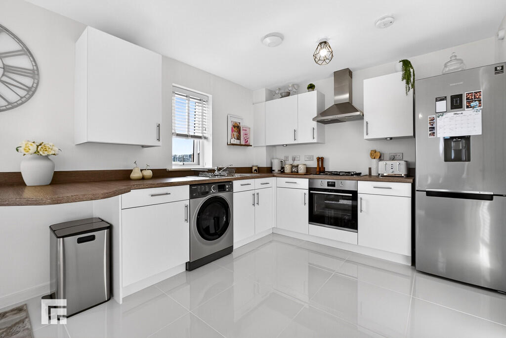 KITCHEN/LOUNGE/DINER19' 04" x 9' 07" (5.89m x 2.92m) Porcelain tiles throughout. Open plan lounge/dining area. Fitted kitchen to comprise of fitted base and wall units with rolled edge laminated work surfaces incorporating stainless steel sink and drainer with mixer taps over. Four ring burner gas hob with electric oven and extractor fan over. Fridge freezer and washing/dryer machine. Double glazed window to rear. French doors providing access to the private balcony. Radiator.