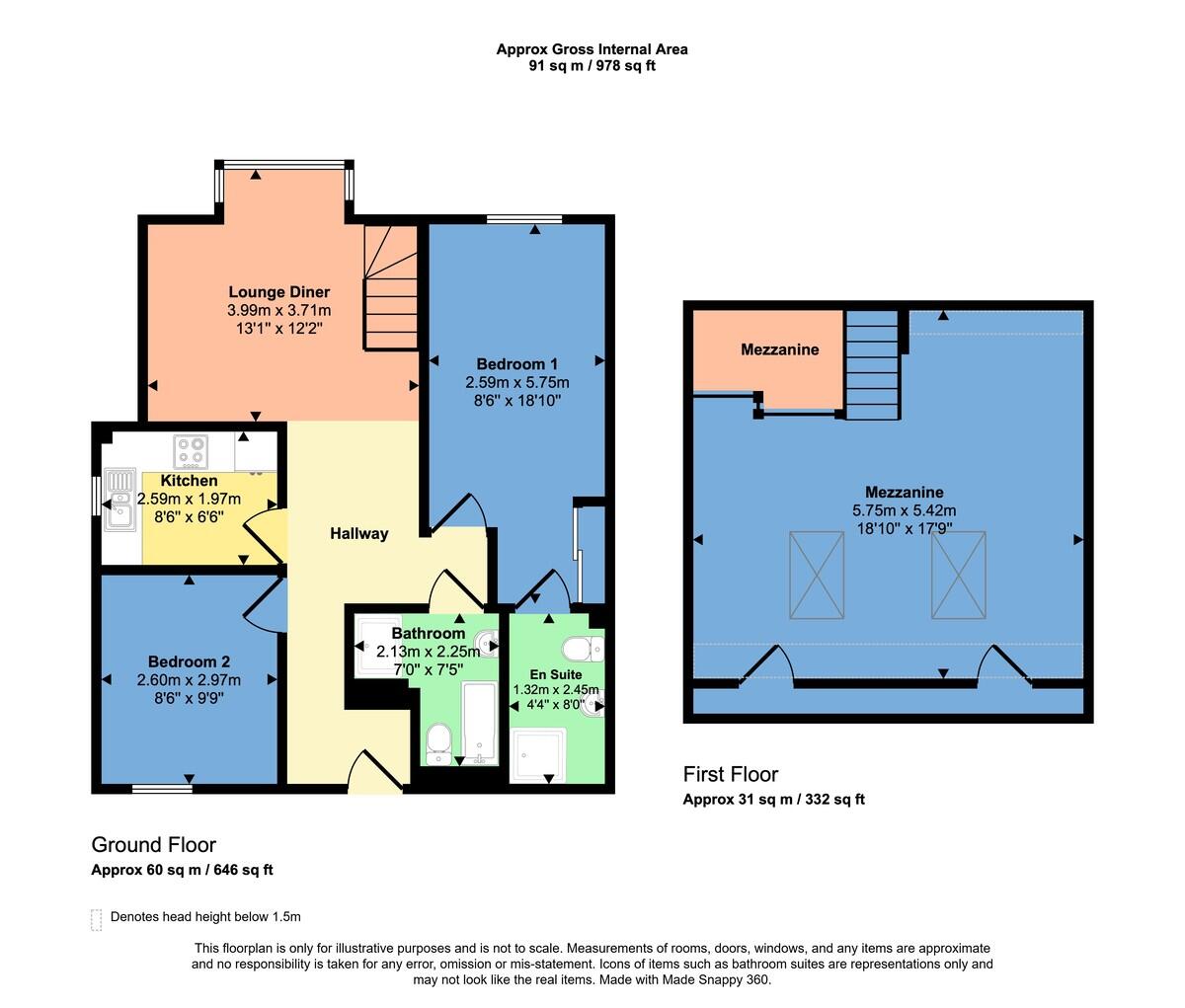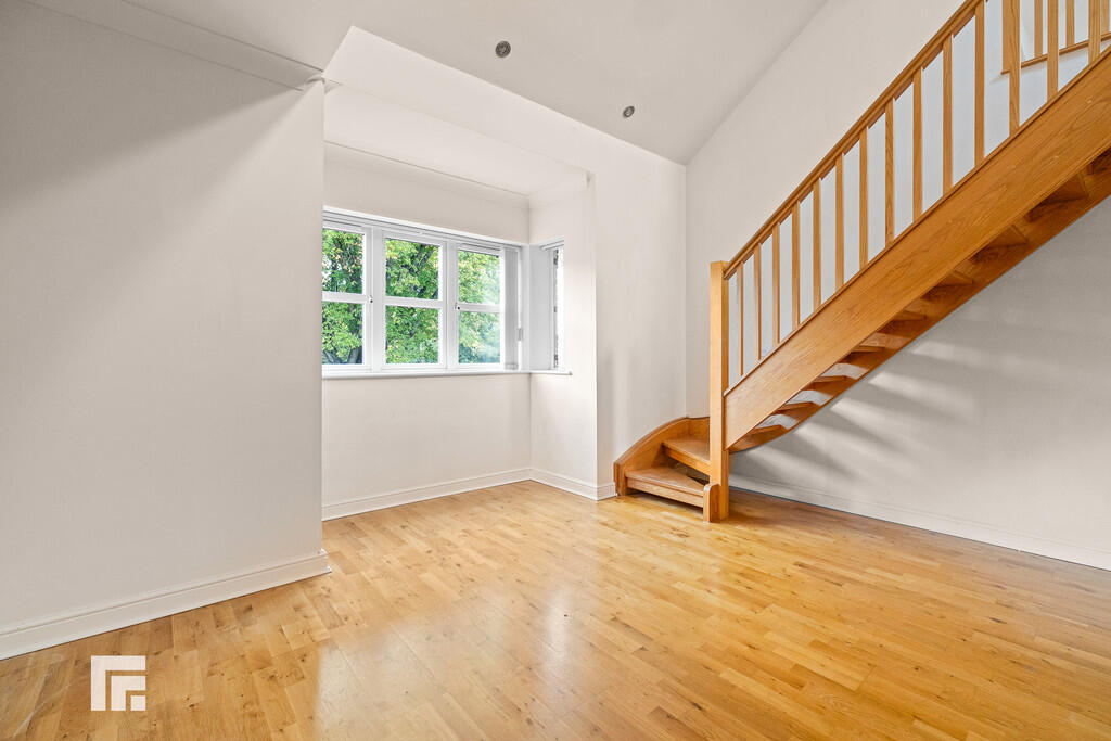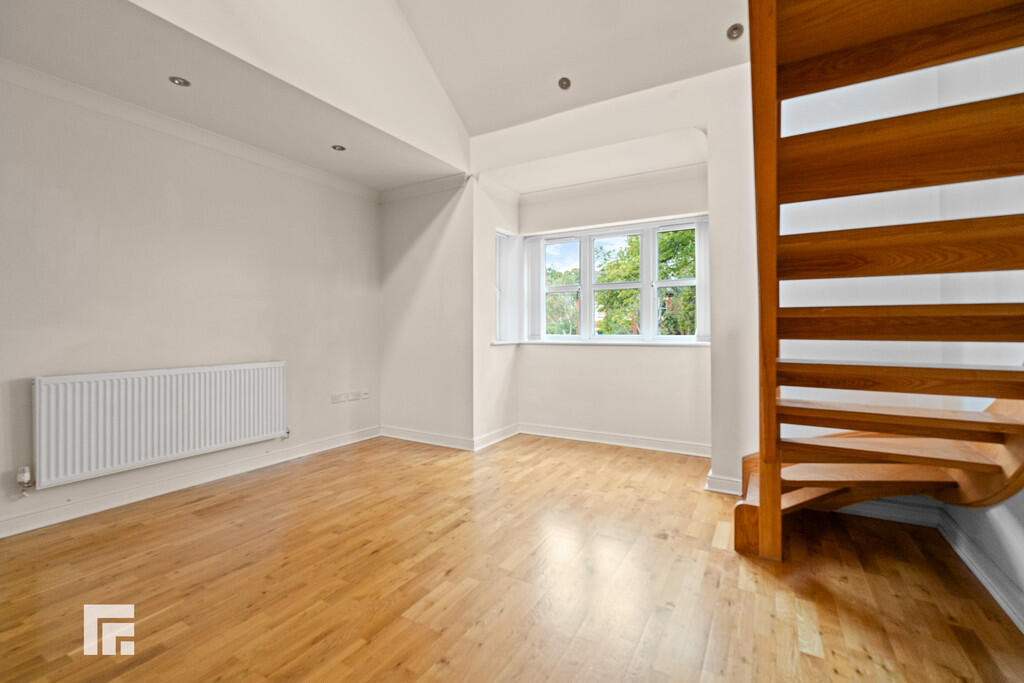 LOUNGE/DINER13' 1" x 12' 2" (3.99m x 3.71m) uPVC double glazed bay windows to front aspect with pleasant outlook. Ample natural daylight and high ceiling. Oak wood flooring. Radiator. Open tread oak wood staircase to mezzanine floor. Spotlights.