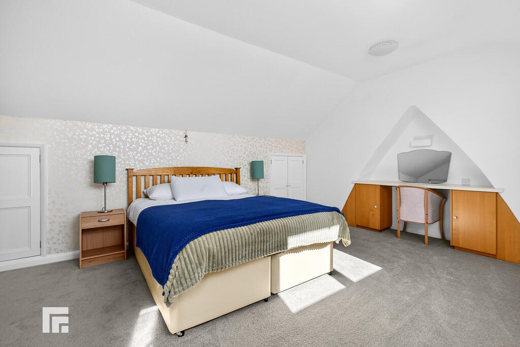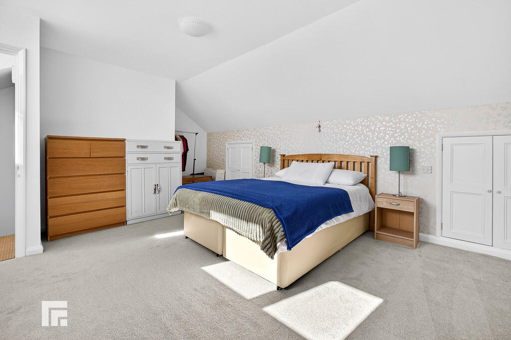 MAINBEDROOM Situated on the top floor with double glazed window to rear aspect. Built in cupboards to eaves. Central heating radiator and power points.