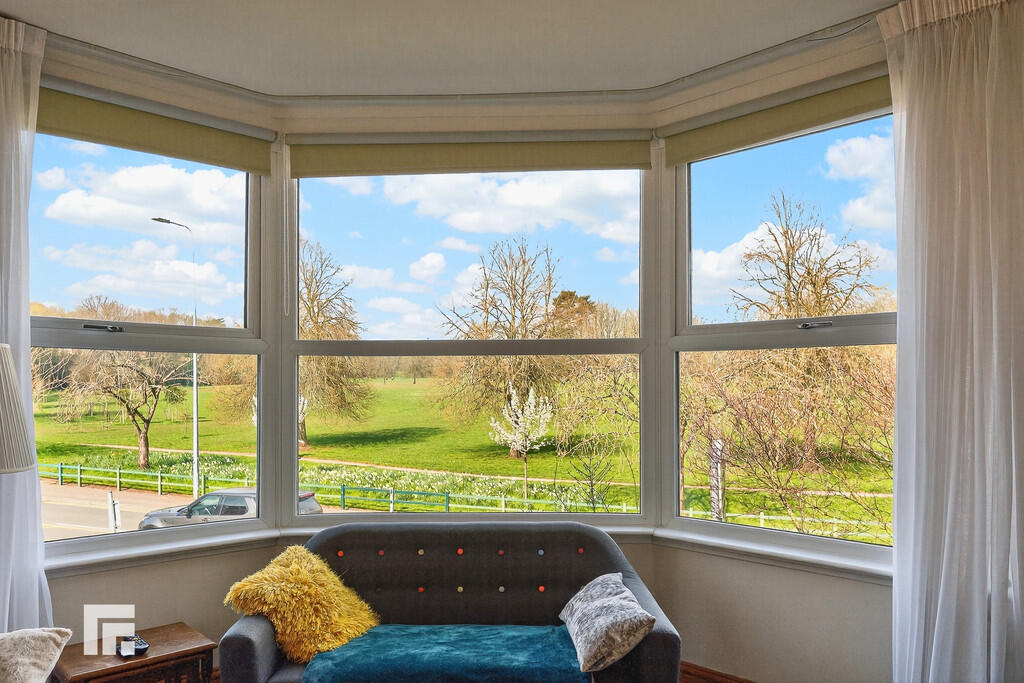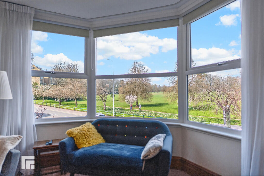 LOUNGE Large double glazed bay window to front aspect offering delightful open views across to Pontcanna fields and beyond. Feature fireplace with surround. Central heating radiator. TV point and power points.