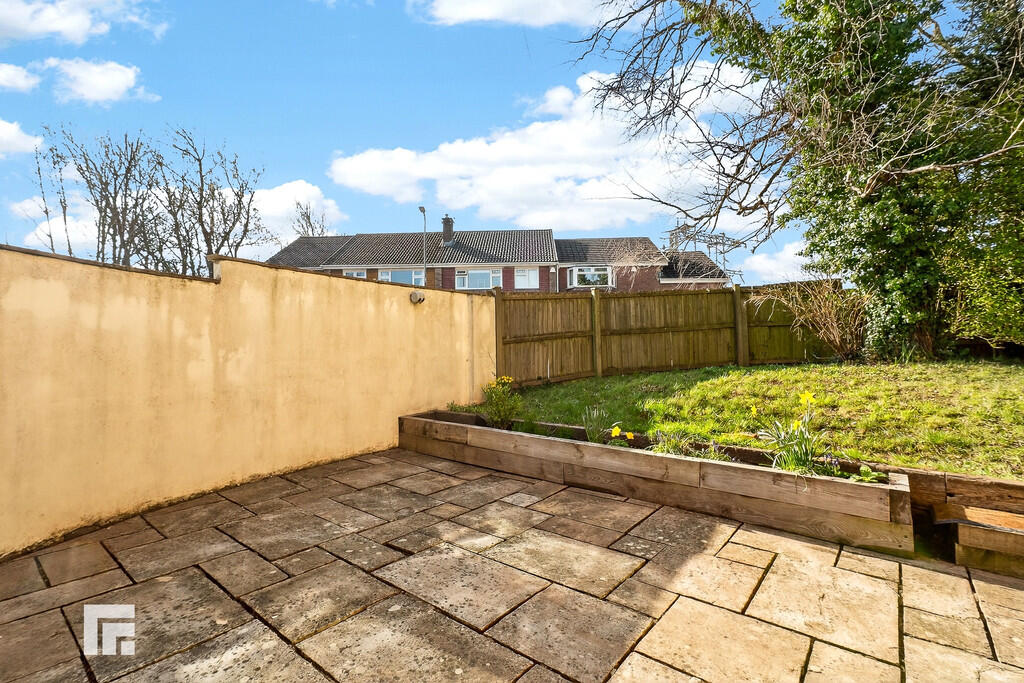 OUTSIDE REAR & SIDE - Enclosed with wooden fence. Patio area with steps up to lawn area to rear and side.