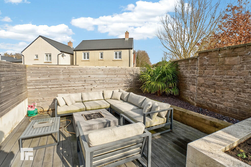 REARGARDEN A landscaped rear garden mainly laid to lawn with full width paved patio, and sunken decked seating area. Stone boundary wall and fencing. Outside lighting, tap and power points. Gate to driveway.