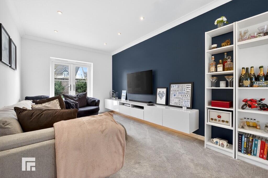 KITCHEN/DINER18' 4" x 9' 2" (5.60m x 2.80m) A modern kitchen fitted with a wide range of base and eye level units incorporating stainless steel sink and complementary worktops. Feature breakfast bar. Fitted electric Neff microwave/double oven and induction hob with extractor hood over. Integrated fridge/freezer, washing machine, tumble dryer, dishwasher and drinks cooler. Cupboard housing gas central heating boiler. Tiled flooring. Radiator. uPVC double glazed windows to front and side, with French patio doors to rear garden. Spotlights