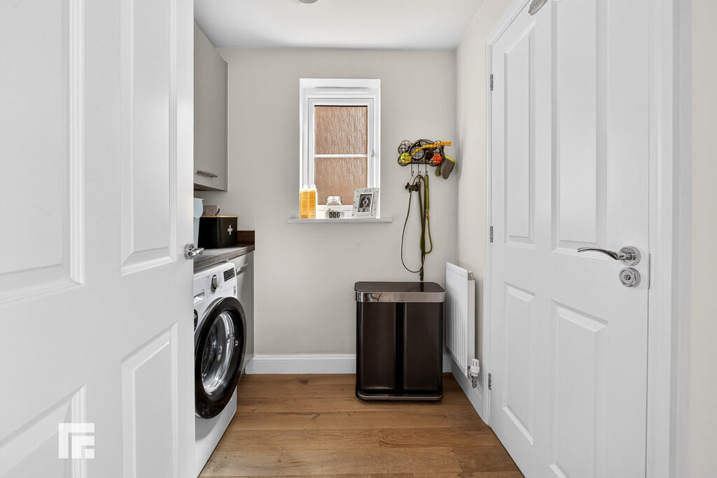 UTILITYROOM6' 6" x 6' 6" (2.00m x 2.00m) Appointed along one side, high and low level cupboards beneath laminate worktops. Concealed gas 'combi' boiler. Plumbing for washing machine. Extractor fan. Continuation of engineered oak flooring. Radiator. Obscured glass window to side. Door to cloakroom/WC.