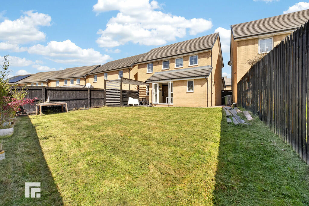 OUTSIDEREARGARDEN A large, beautifully maintained South Westerly facing rear garden. Paved patio leading to a large area of lawn. Composite decked area with wooden pergola. Outside tap. Bordered by a timber fence with timber gate to side for access.