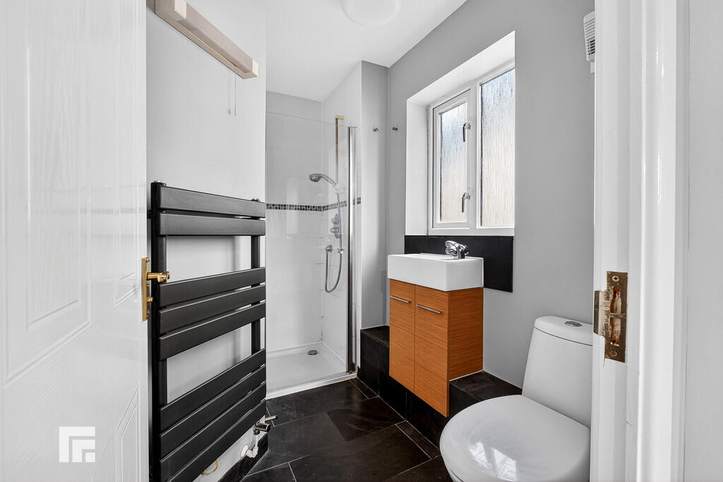 ENSUITE8' 3" x 5' 6" (2.54m x 1.69m) Modern ensuite with tiled flooring. Obscure double glazed uPVC window. White three-piece suite including vanity enclosed wash hand basin, Shower cubicle with Glass shower screen. Heated towel rail. Extractor fan. Pendant light fitting