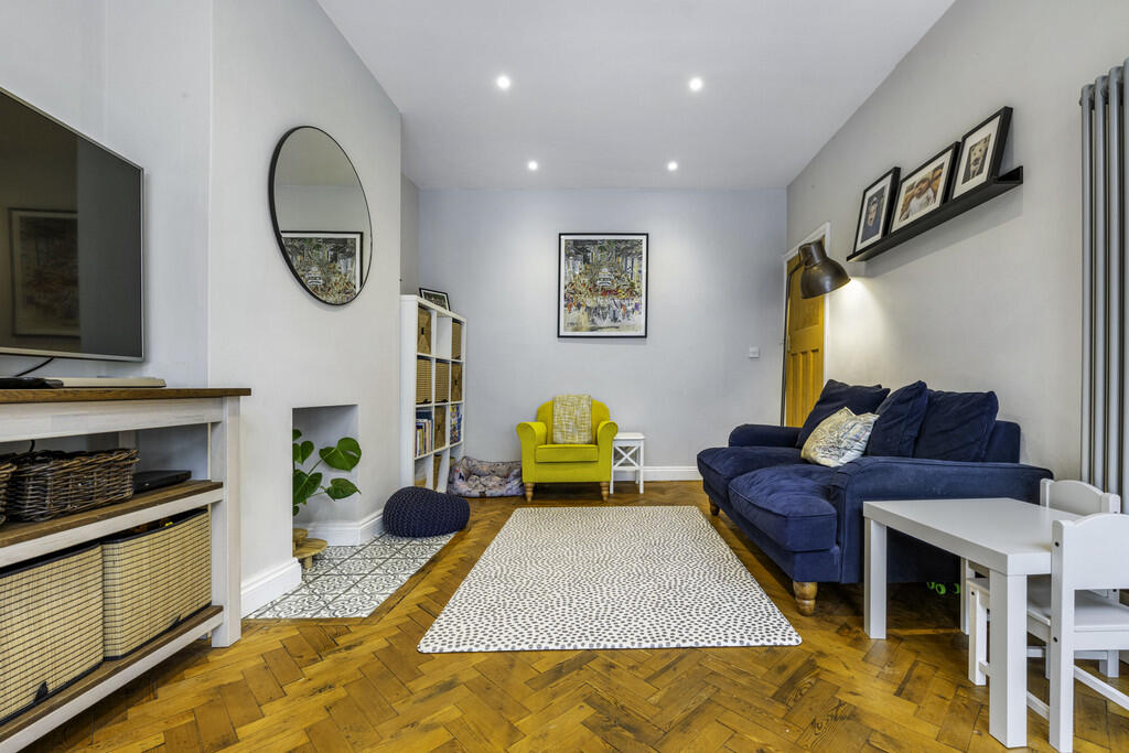 LOUNGE13' 6" x 11' 4" into alcove (4.14m x 3.46m) Double glazed uPVC window to front. Contemporary vertical radiator. Wood block flooring. Coved ceiling and picture rail. Chimney breast with tiled hearth and wooden mantle.