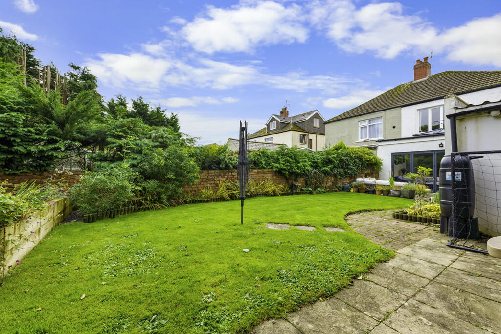 Rear- An excellent size private garden, mostly laid to lawn with paved and decked areas. Raised borders.
