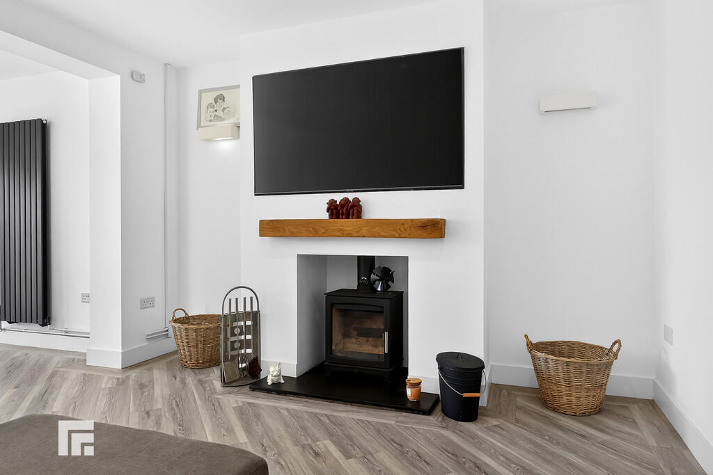 LOUNGE/DININGROOM23' 10" x 14' 10" (7.26m x 4.52m) Lounge: Modern wall mounted radiator. Cast iron burner. Smooth plastered walls and ceiling. Open to: