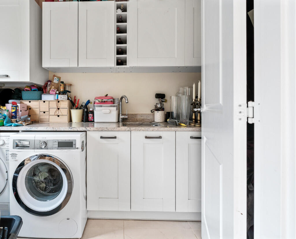 UTILITYROOM9' 4" x 5' 4" (2.86m x 1.65m) Appointed along one side in matching units beneath granite worktop surface, inset stainless steel sink, plumbing for washing machine and a space for tumble dryer, quality tiled flooring, concealed 'Ideal Logic' gas central heating boiler, door to rear garden and radiator.