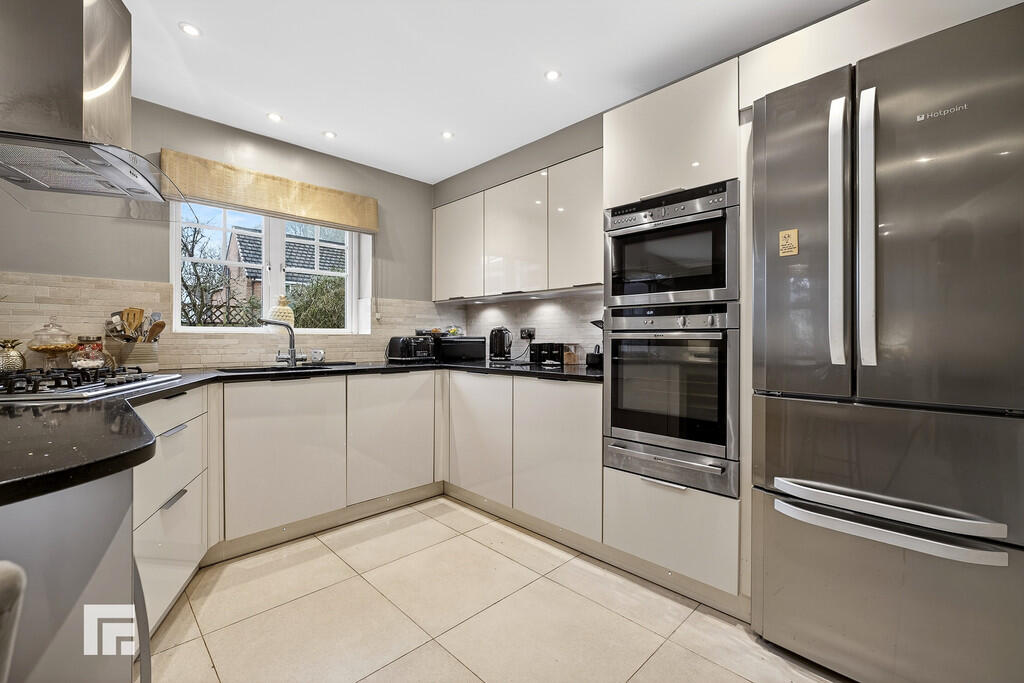 KITCHENANDDININGROOM19' 6" x 11' 11" (5.96m x 3.64m) Well appointed along three sides in light high gloss fronts beneath granite worktop surfaces. Inset 1.5 bowl stainless steel sink with worktop side drainer. Inset five ring gas hob with curved glass cooker hood above. Neff integrated double oven and microwave and grill with plate warming drawer below. Space for fridge freezer. Integrated Miele dishwasher Matching range of eye level wall cupboards. Granite worktop peninsula island. Under counter wine cooler. Pull out pantry cupboard. Ample space for large family dining table. Tiled splash back to kitchen area. Windows to front and side. Tiled flooring. Double doors to conservatory. Opening to utility room. Two radiators.