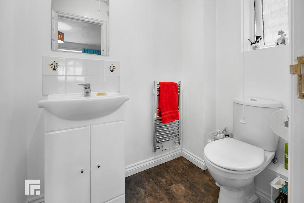 CLOAKROOM6' 9" x 2' 10" (2.06m x 0.87m) Modern white suite; low level WC, wash hand basin with chrome mixer tap and vanity. Radiator. Obscured glass window to front.