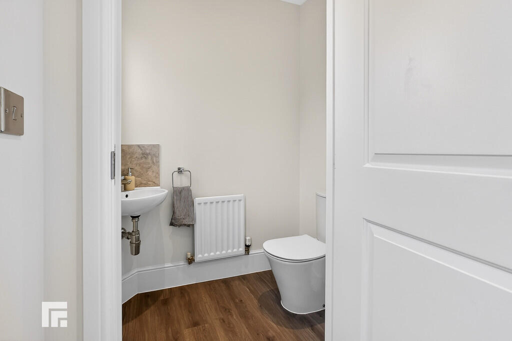 WC5' 10" x 3' 5" (1.78m x 1.06m) Obscured double glazed uPVC window to rear. Amtico flooring. Radiator. W.c and wall hung wash hand basin with mixer tap and tiled splash back. Spotlights.