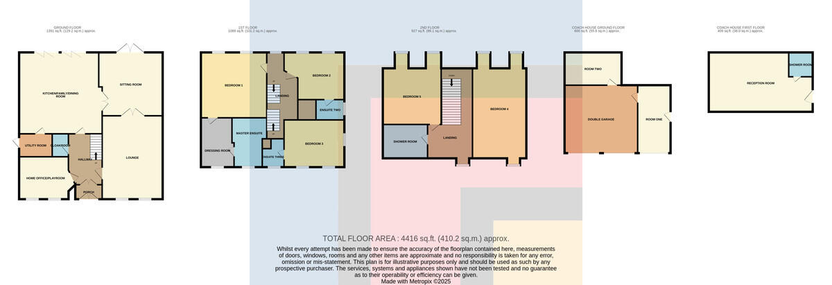 ** EXECUTIVE FIVE BEDROOM DETACHED FAMILY HOME ** ON A PLOT OF OVER HALF AN ACRE ** COACH HOUSE WITH GARAGES AND STORAGE ** An exceptionally spacious, executive detached family home on a large plot of over half an acre, being tucked away in a sought after location. Entrance porch, hallway, cloakroom, home office/playroom, large lounge with feature fireplace, sitting room with Bi folding doors to the attractive rear garden, modern fitted kitchen/diner and family room with integrated appliances and marble worktop surfaces along with Bi folding doors to the rear paved patio, utility room. To the first floor are three sizeable double bedrooms each with en-suites, the primary bedroom has a newly fitted ensuite shower and bathroom along with a dressing room. To the second floor are two further large double bedrooms and a family shower room. Detached Garages/storage/coachhouse with spacious room and shower room above. Gas central heating. Double glazing. Large paved patio leading onto a sizeaDESCRITION ** EXECUTIVE FIVE BEDROOM DETACHED FAMILY HOME ** ON A PLOT OF OVER HALF AN ACRE ** COACH HOUSE WITH GARAGES AND STORAGE ** An exceptionally spacious, executive detached family home on a large plot of over half an acre, being tucked away in a sought after location. Entrance porch, hallway, cloakroom, home office/playroom, large lounge with feature fireplace, sitting room with Bi folding doors to the attractive rear garden, modern fitted kitchen/diner and family room with integrated appliances and marble worktop surfaces along with Bi folding doors to the rear paved patio, utility room. To the first floor are three sizeable double bedrooms each with en-suites, the primary bedroom has a newly fitted ensuite shower and bathroom along with a dressing room. To the second floor are two further large double bedrooms and a family shower room. Detached Garages/storage/coachhouse with spacious room and shower room above. Gas central heating. Double glazing. Large paved patio leading onto a sizeable rear lawn. Long and wide Keyblock driveway to front providing parking for numerous cars. No chain. EPC Rating: C.