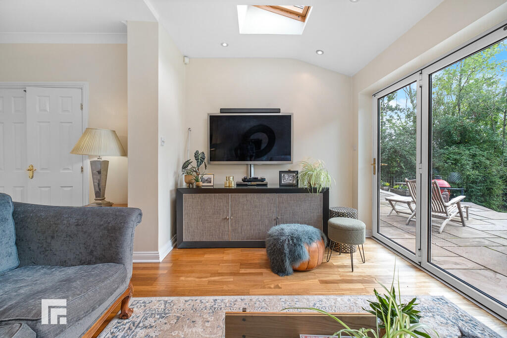 SITTINGROOM16' 4" x 16' 3" (4.99m x 4.97m) An excellent further reception with bi-folding doors opening to the rear paved patio. Wood flooring. Radiator. Double doors to lounge and kitchen.