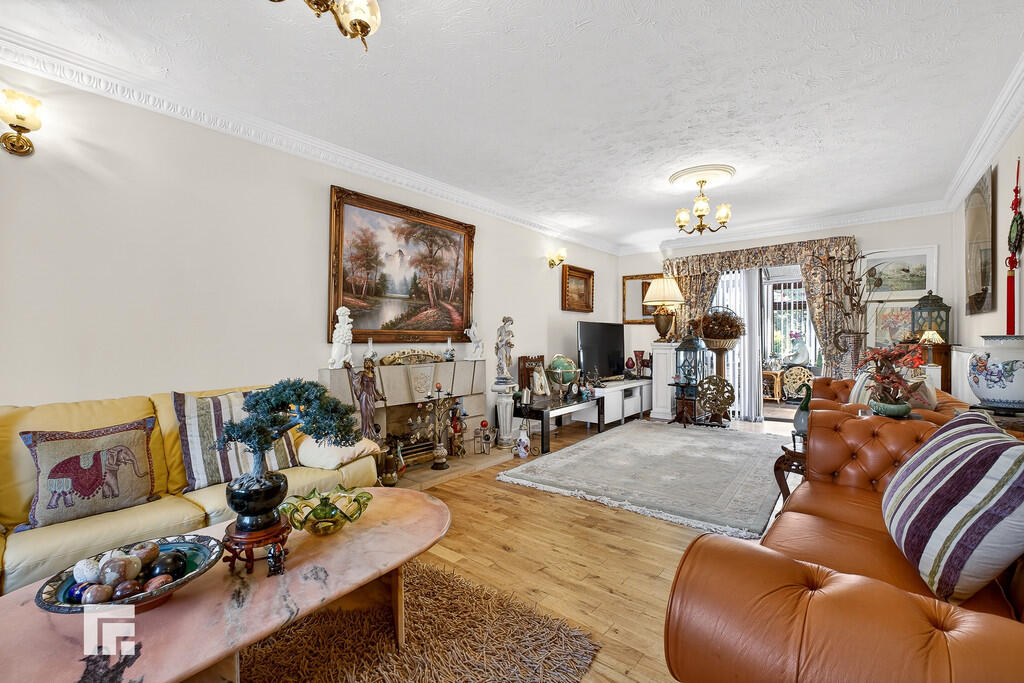LOUNGE25' 8" x 9' 10" (7.84m x 3/66m) Double glazed window to front and aluminium sliding doors to rear conservatory. Oak wood flooring. Feature gas fireplace. Two radiators.