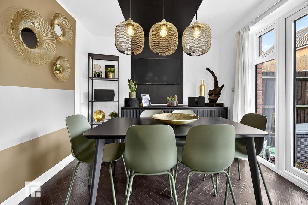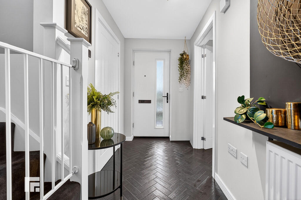 ENTRANCEHALLWAY Approached via a composite entrance door leading to the spacious entrance hallway. Staircase to first floor. Storage cupboard. Quality karndean herringbone effect flooring. Radiator.